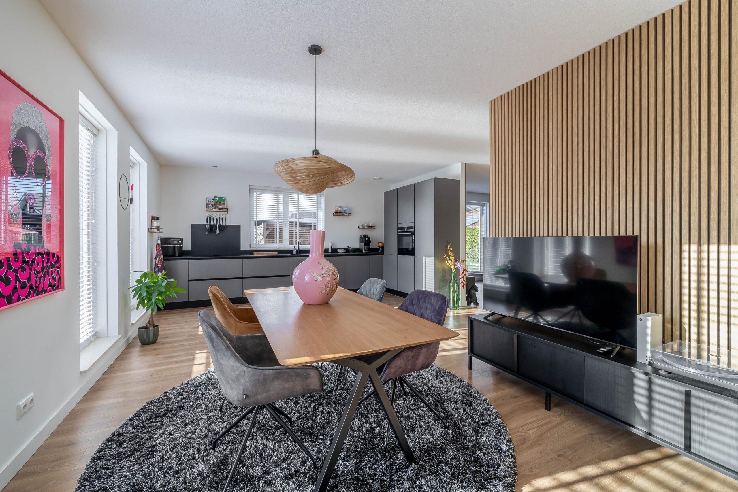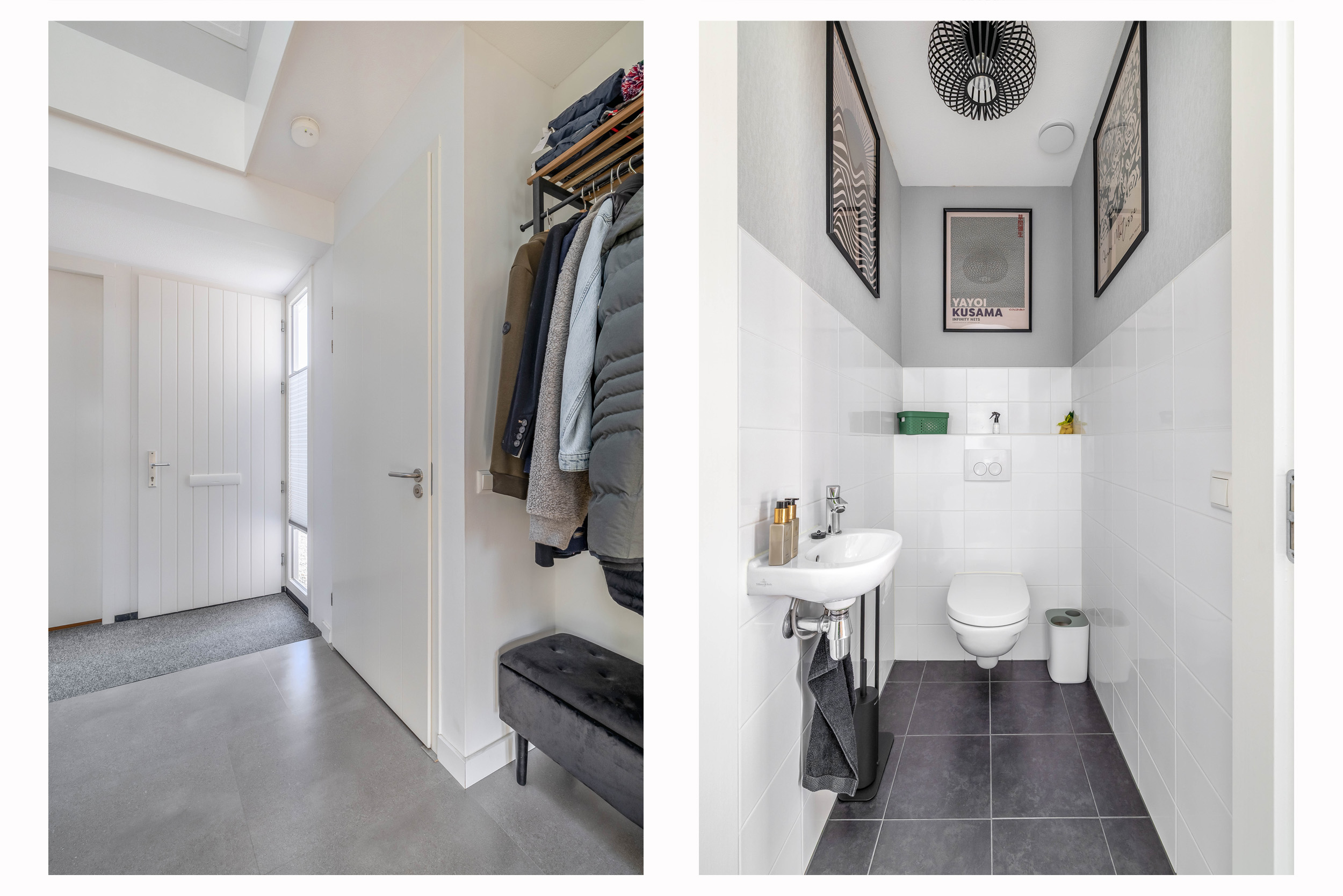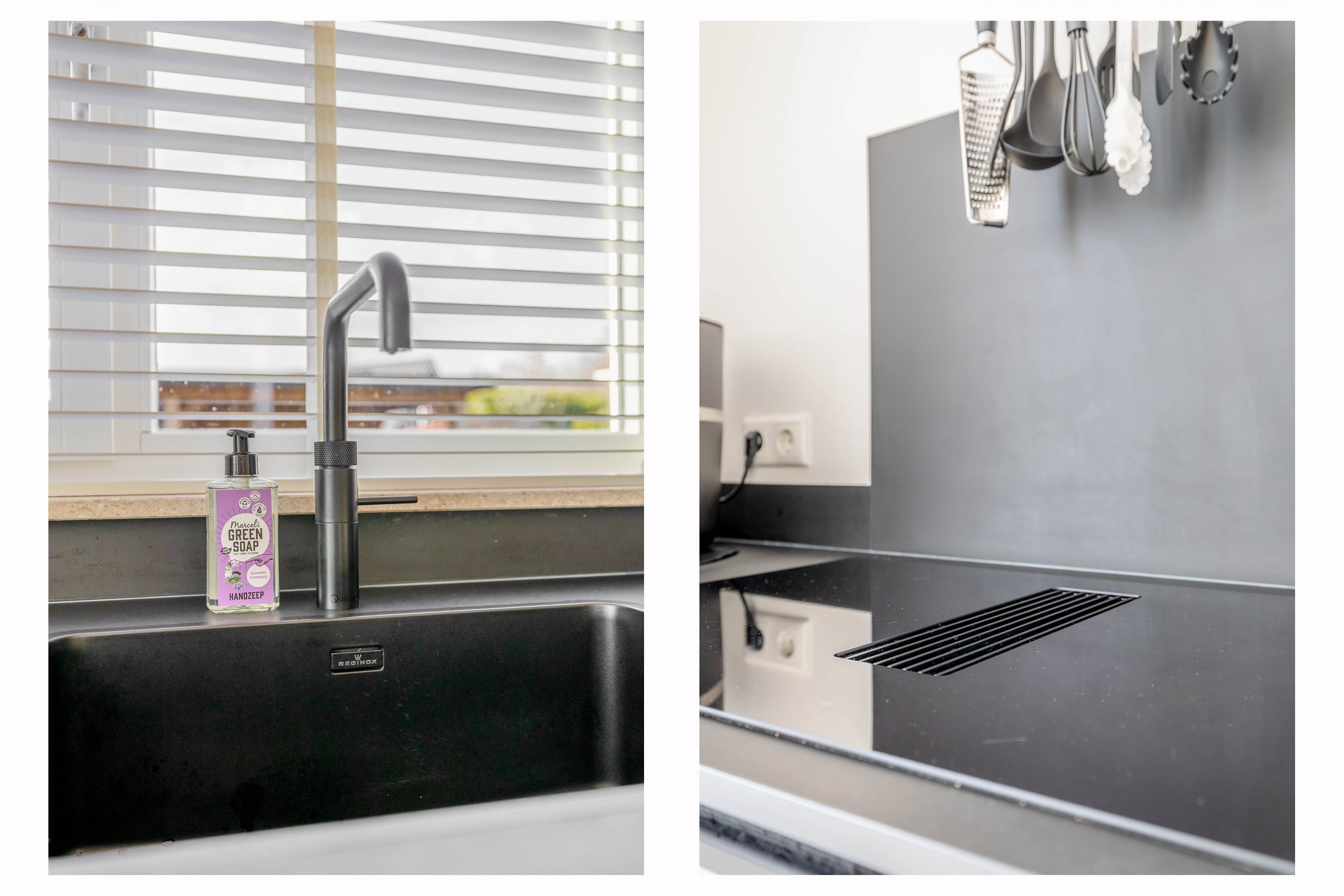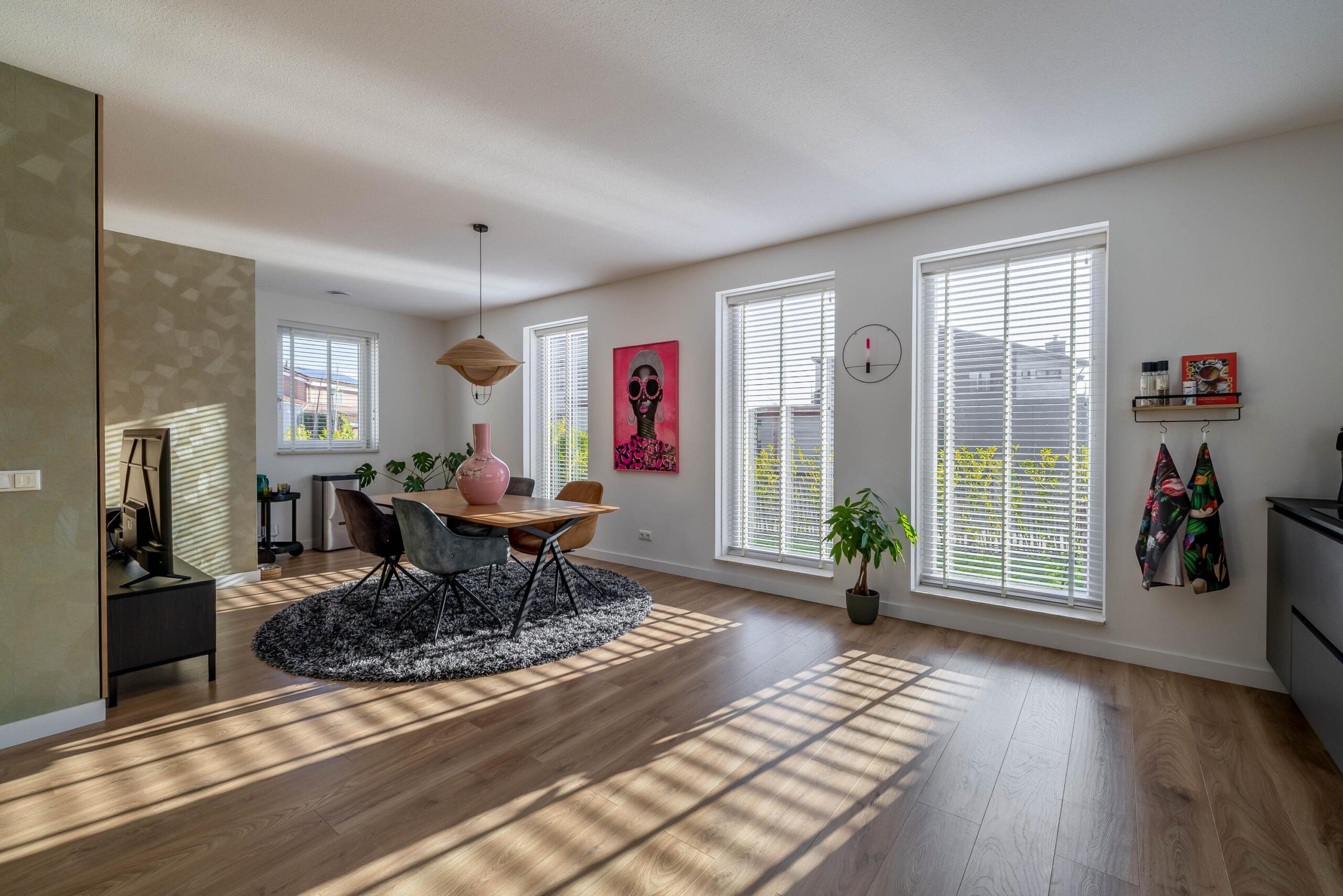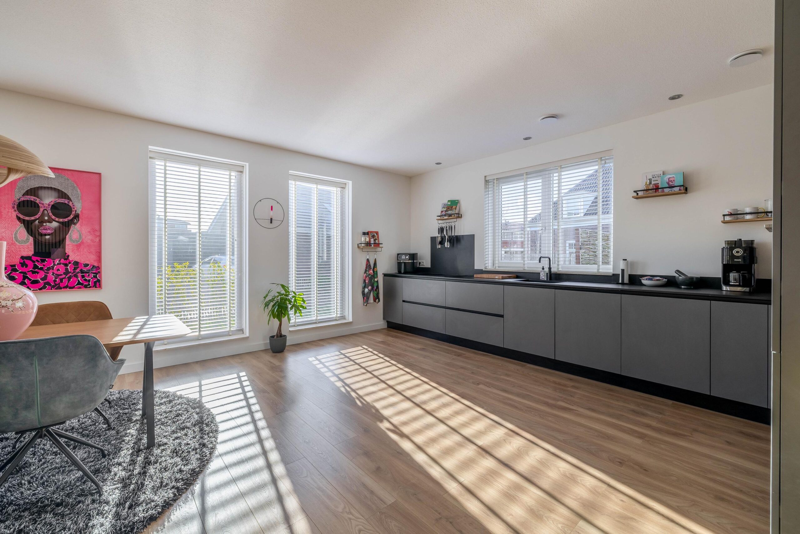 Bij binnenkomst in de hal voel je al direct de ruimte in het huis met openslaande deuren naar het leefgedeelte en de vide die een ruimtelijk gevoel geeft. Ook bevindt zich hier het toilet (wandcloset) met fonteintje. Loop door de dubbele deuren en aan je linkerhand bevindt zich de royale woonkeuken met een moderne en eigentijdse kleurstelling. De keuken is uitgerust met veel kastruimte en allerhande inbouwapparatuur waaronder een Quooker, grote combi-oven, koel-/vriescombinatie, vaatwasser en inductiekookplaat met geïntegreerde afzuigkap. De grote en vele raampartijen halen veel natuurlijk licht binnen en er is ruimte voor een grote eettafel. De woonkamer is op een slimme manier gescheiden met de keuken door een wand, wat direct een goede mogelijkheid geeft om een zithoek te creëren. Erg leuk is de enorme ruimte van het huis, maar ook het speelse wat het heeft. Ideaal is de gerealiseerde ruimte aan de achterkant van de woning te bereiken middels de dubbele deur. Dit leent zich perfect als bijvoorbeeld kantoor, hobbyruimte of zelfs als speelhoek voor de kinderen! Via de hal loop je direct de volledig geïsoleerde garage in met wasmachineaansluiting, elektra en het technische gedeelte van de woning. Verder is het geheel voorzien van gladde wanden en strak gestucte plafonds en erg comfortabel is de vloerverwarming door de gehele woning.