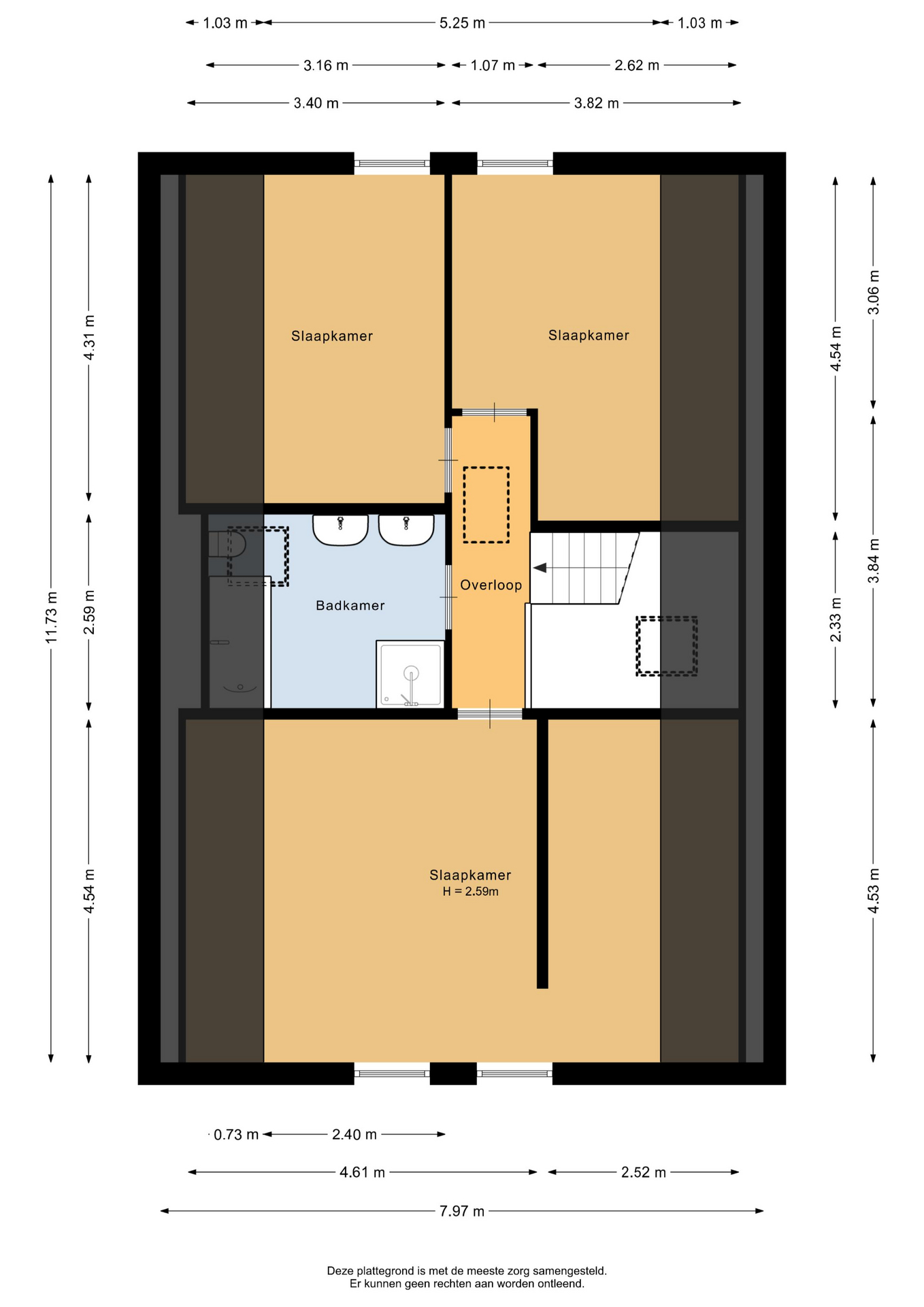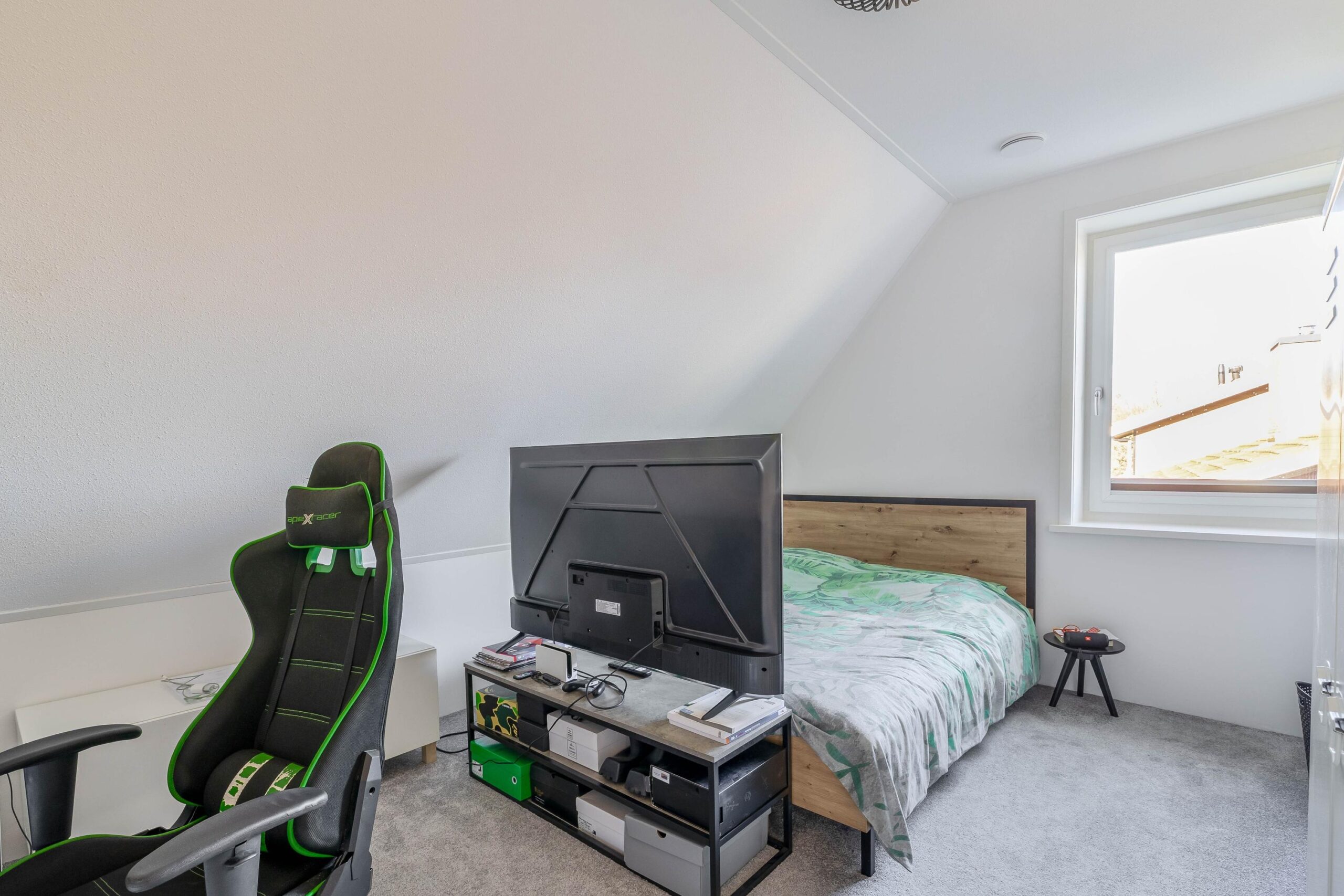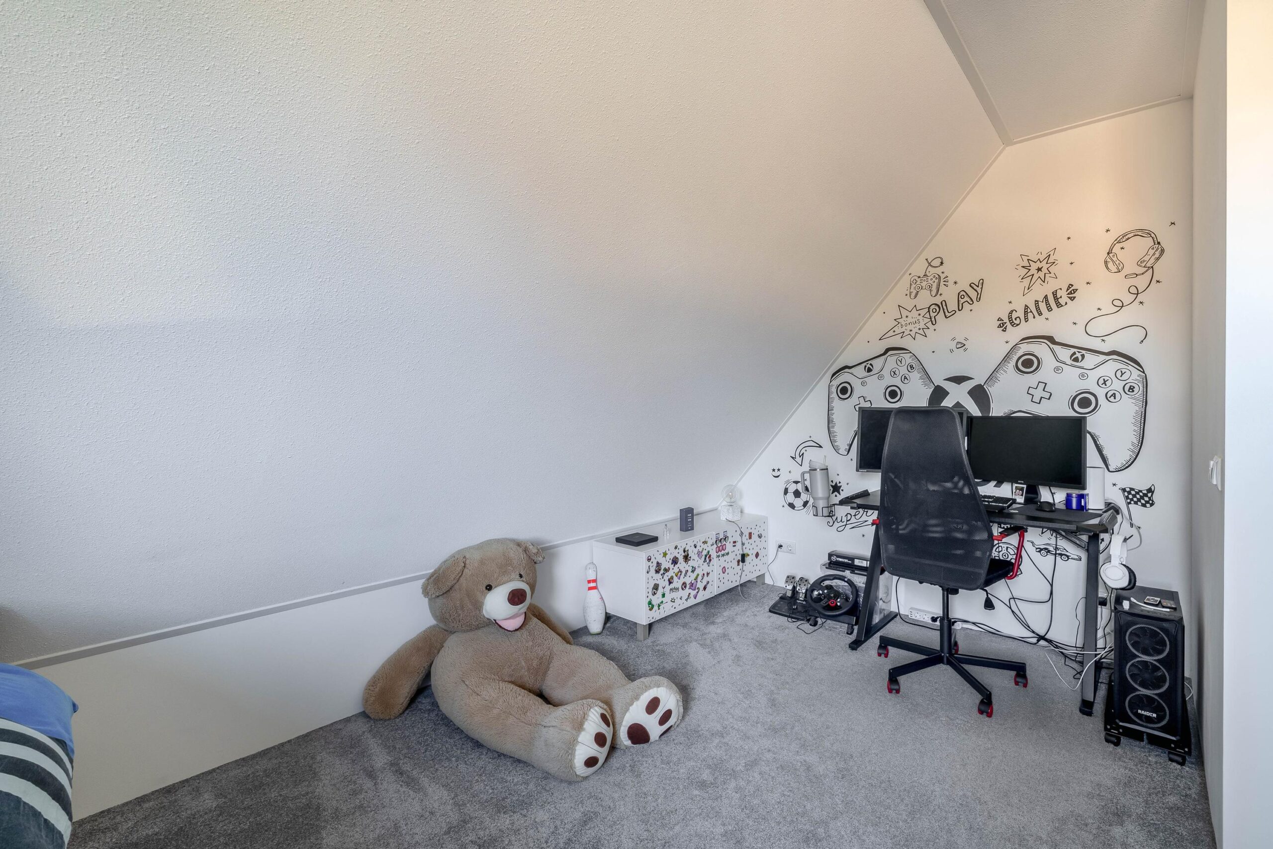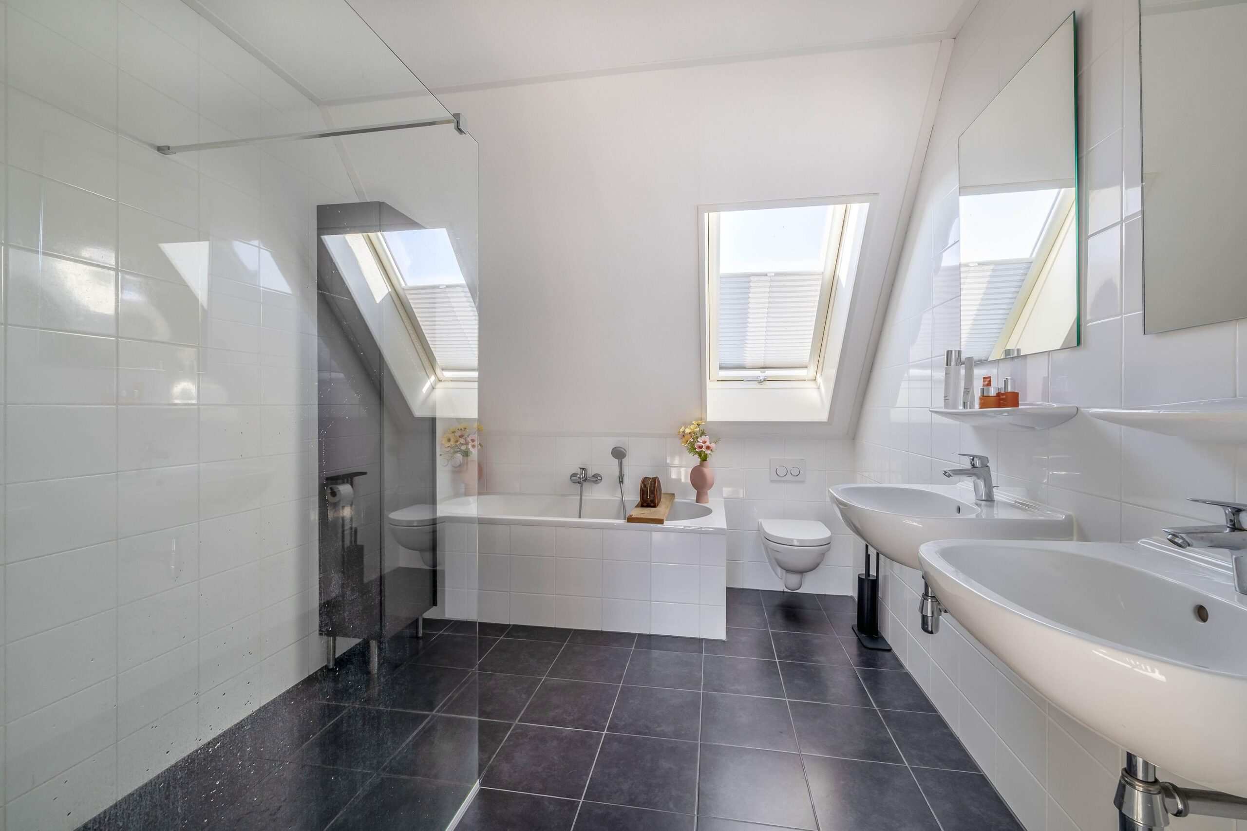 De 1e verdieping beschikt over 3 ruime slaapkamers, waarvan 1 met een walk-in-closet. De kamers hebben aan de schuine kanten bergruimte. De badkamer is in het midden gecentreerd en voorzien van een dubbele wastafel, een ligbad, 2e toilet en vloerverwarming. De 2e verdieping is te bereiken middels een vlizotrap en leent zich als bergruimte. Deze bergzolder loopt over de gehele lengte van de woning!