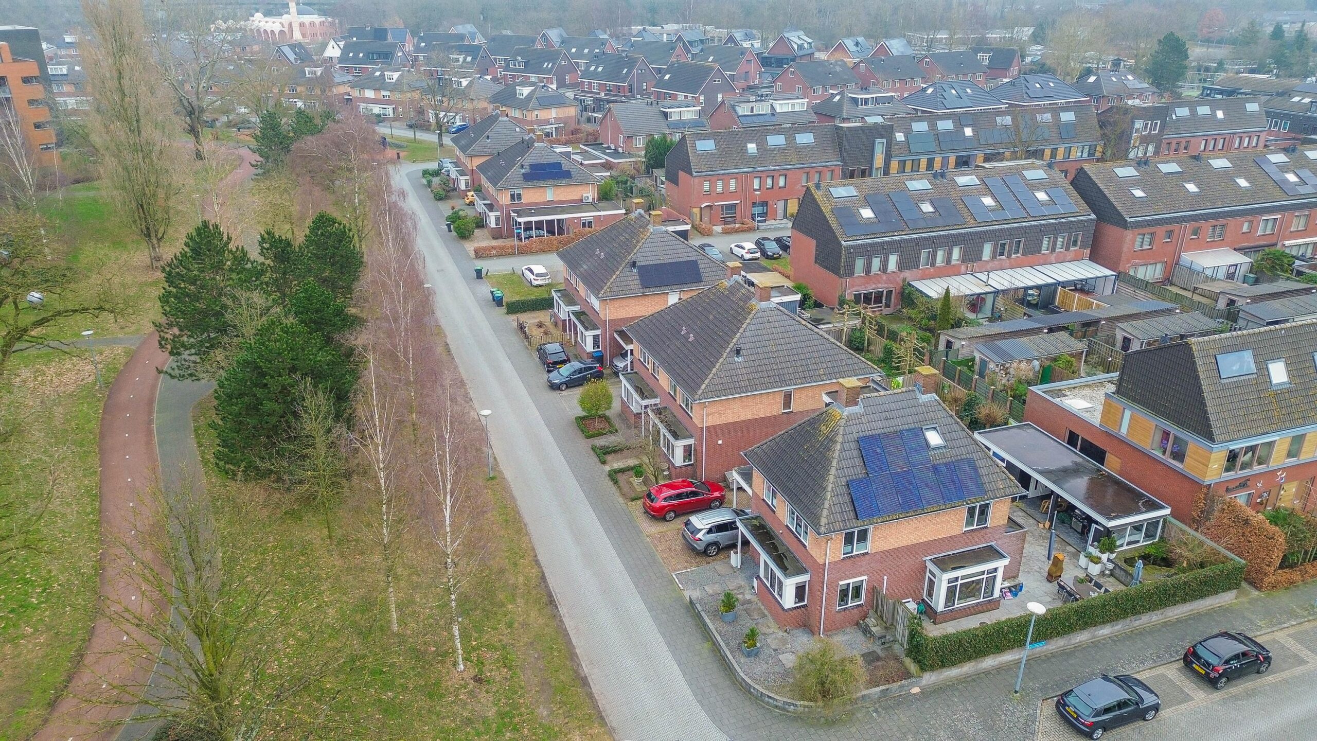 - aan park, aan rustige weg, in woonwijk, vrij uitzicht