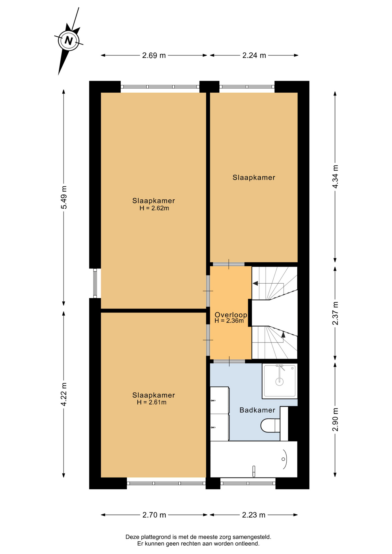 1e Verdieping: Overloop, 3 slaapkamers, badkamer.