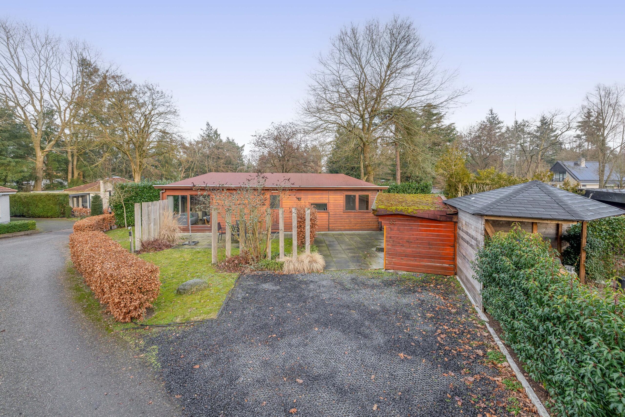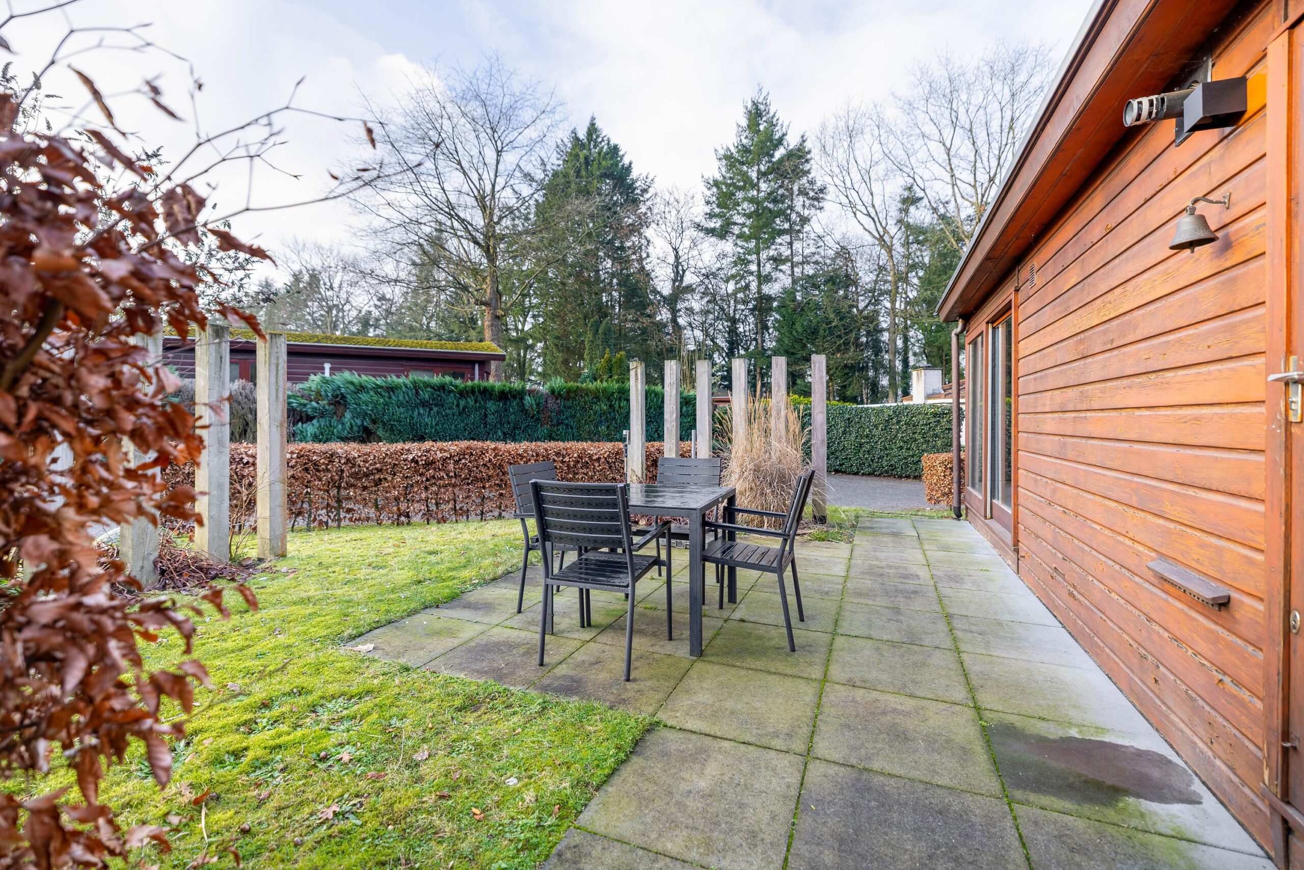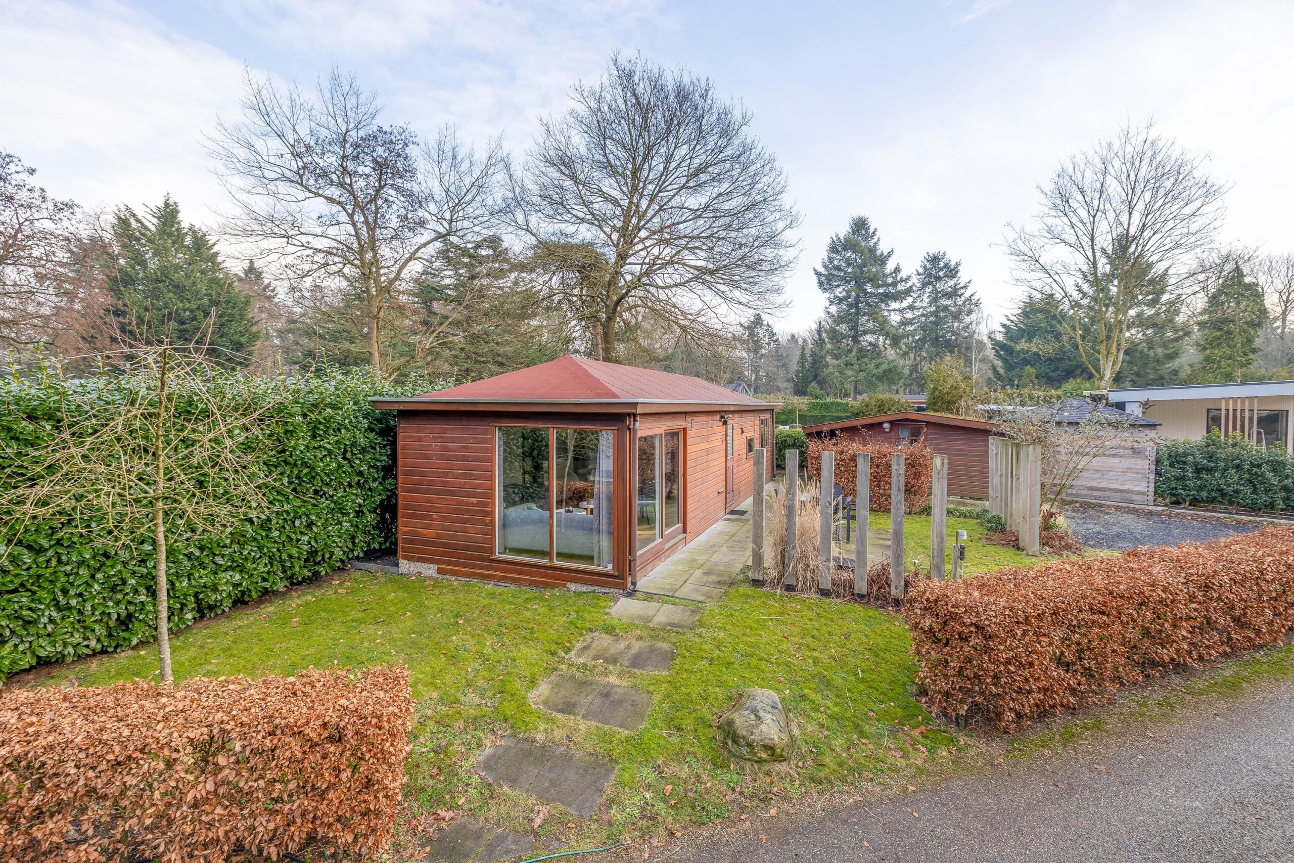 Op het groene en sfeervolle park Het Verscholen Dorp staat deze verzorgde chalet (1995) op een ruim perceel van 219 m² eigen grond.