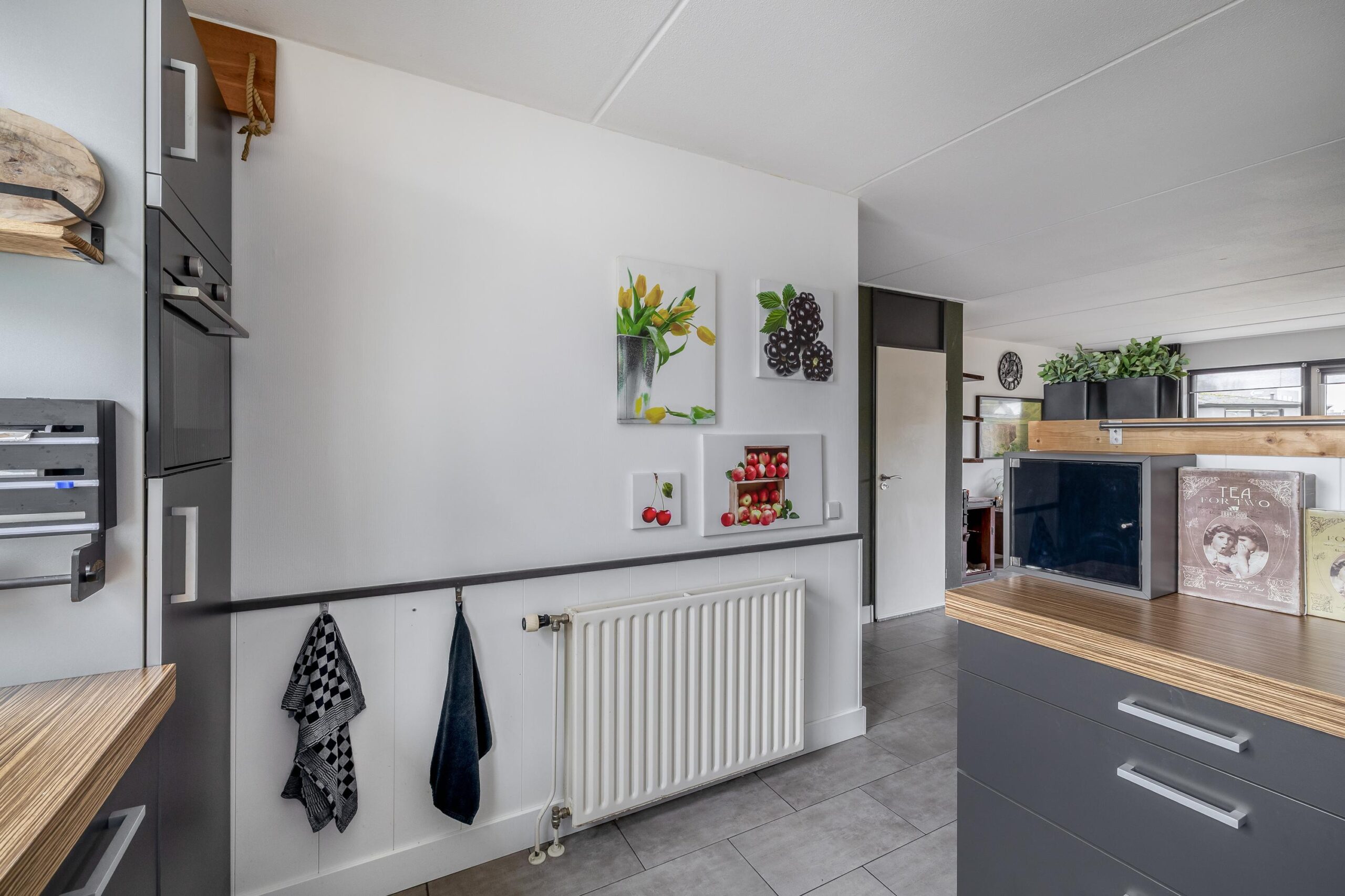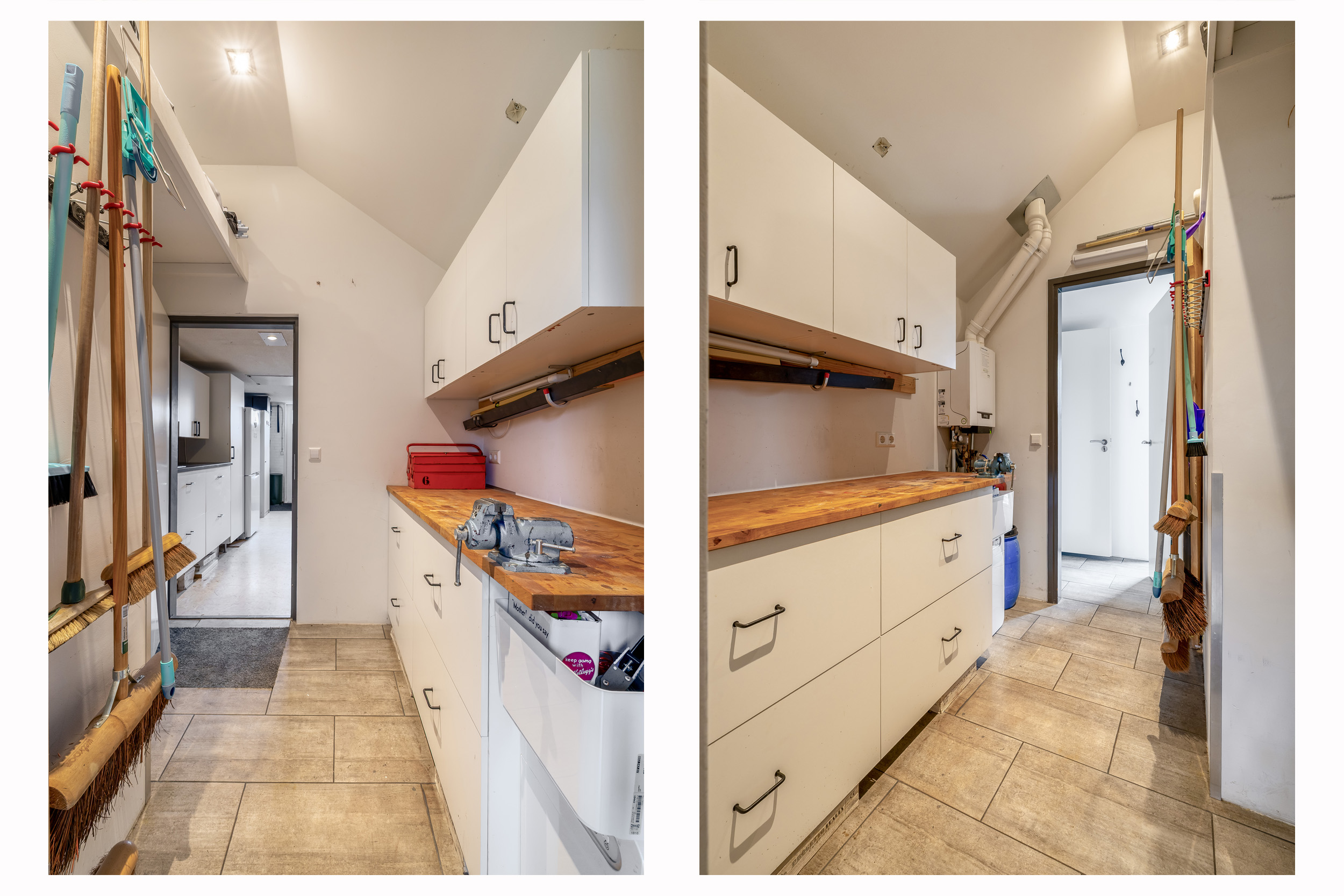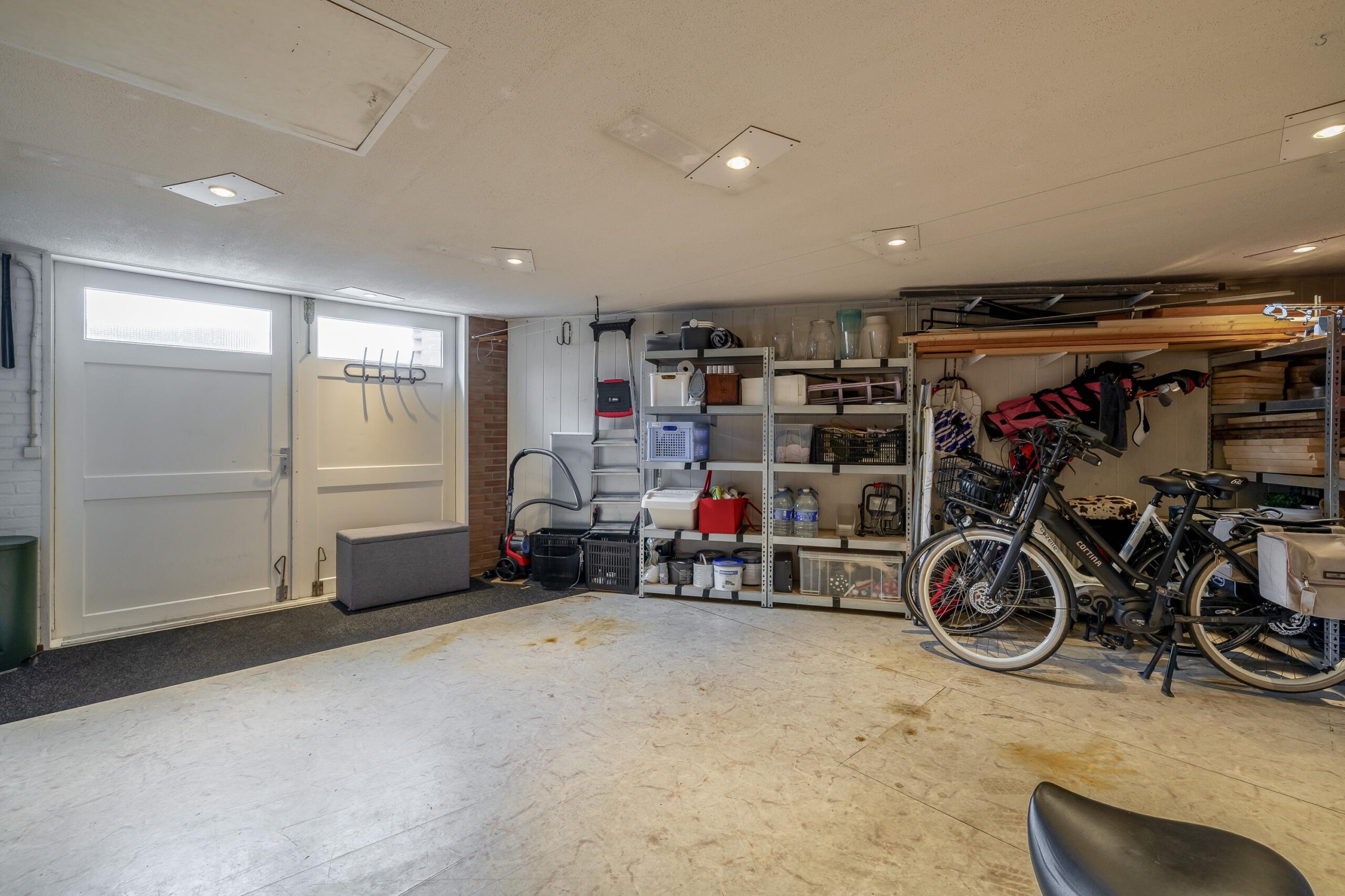 Prettig hier is ook het 2e separate toilet en de doorloop naar de bijkeuken. Hier bevindt zich een handige bergruimte, de 2de cv-ketel (Remeha uit 2015) en de wasmachine-/drogeraansluiting. Ideaal is de directe toegang naar de garage (30 m²) vanaf de entree en de bijkeuken. De garage is voorzien van elektra, heeft een aanrecht met warm en koud water, openslaande deuren en een zeer ruime bergzolder te bereiken middels een vlizotrap.
