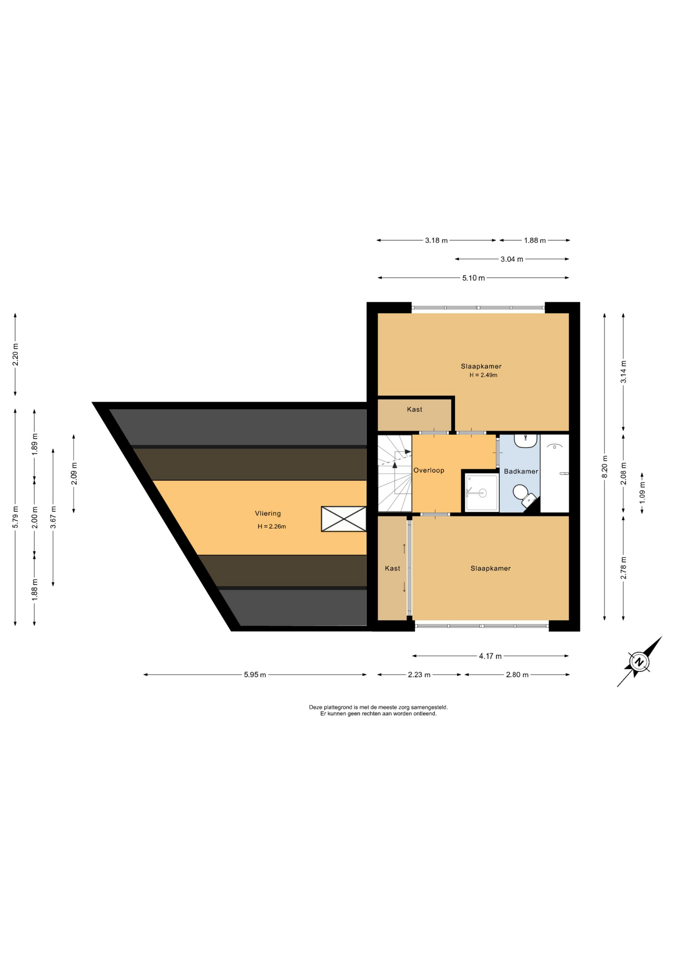 1e Verdieping: Overloop, 2 slaapkamers, inloopkast, badkamer.