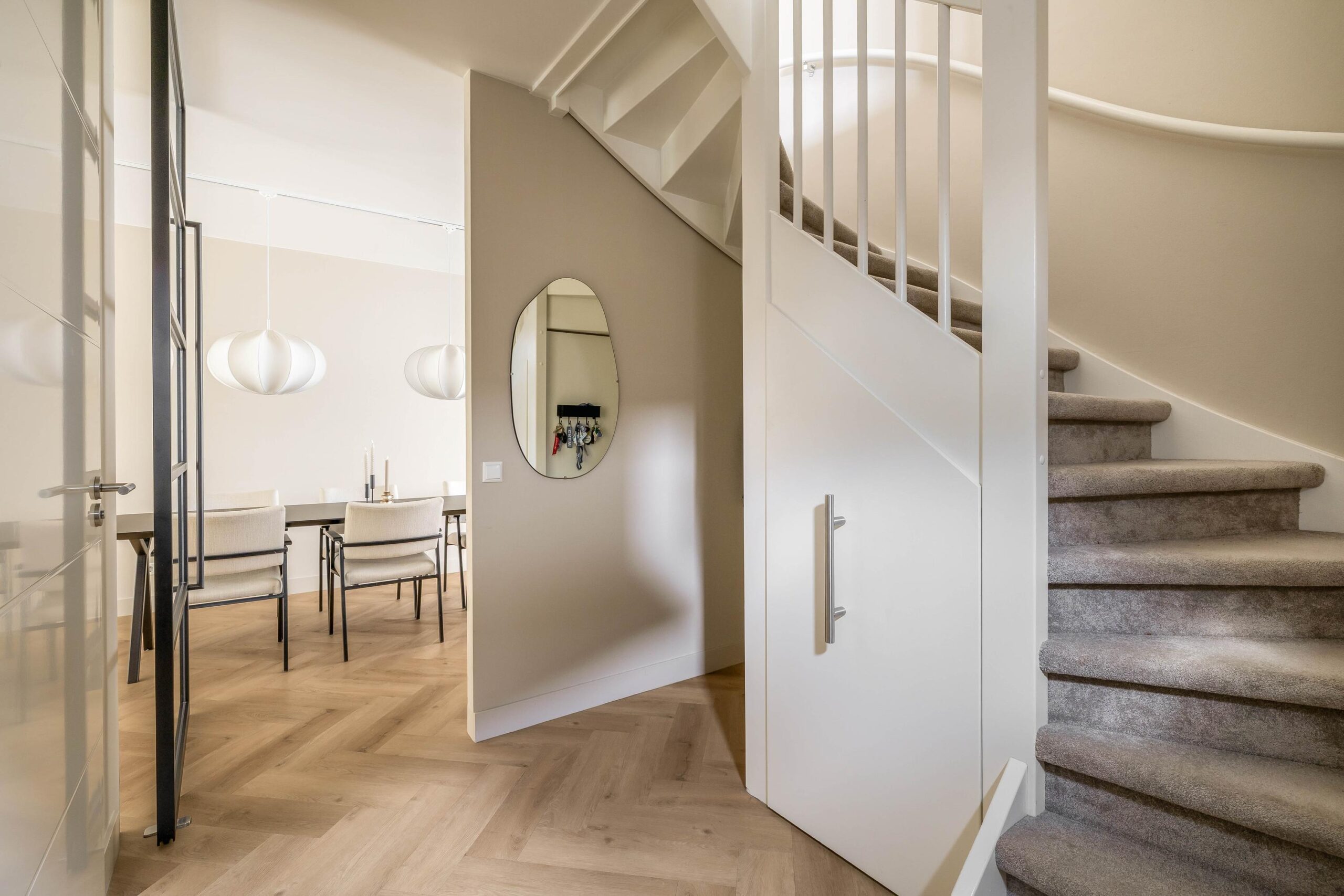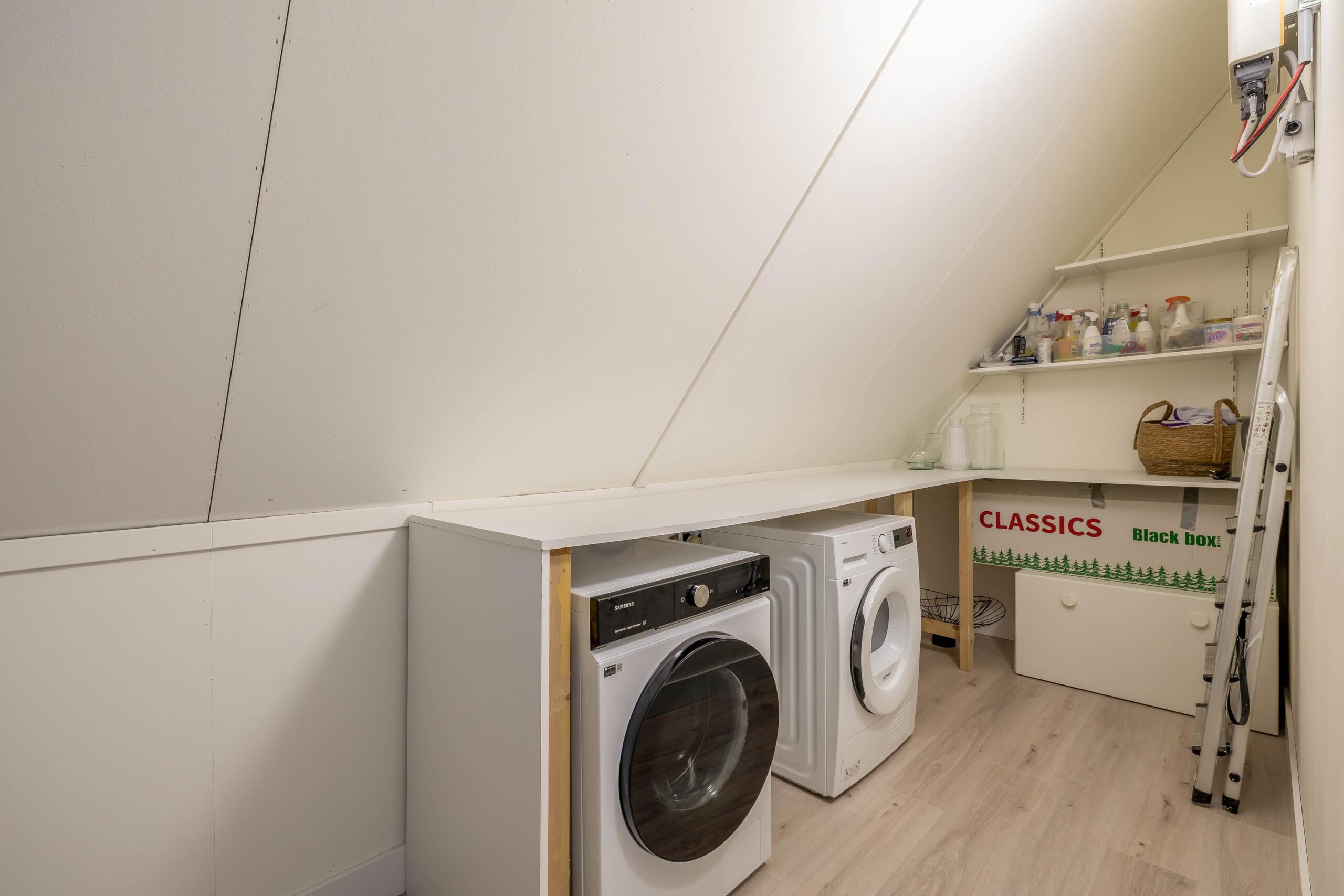 Op de 1e verdieping 3 ruime slaapkamers en een luxe badkamer uit 2019 met hoogwaardig sanitair, een dubbele inloopdouche, een dubbel wastafelmeubel, vloerverwarming en erg prettig is het separate toilet (2023). De 2e verdieping is opgedeeld in een 4e en zelfs 5e slaapkamer, veel bergruimte en een stookruimte waar de wasmachine-/drogeraansluiting en de c.v.-ketel (Intergas uit 2019) zijn gesitueerd. Mooi meegenomen is dat de voorbereidingen voor een warmtepomp al zijn gedaan!