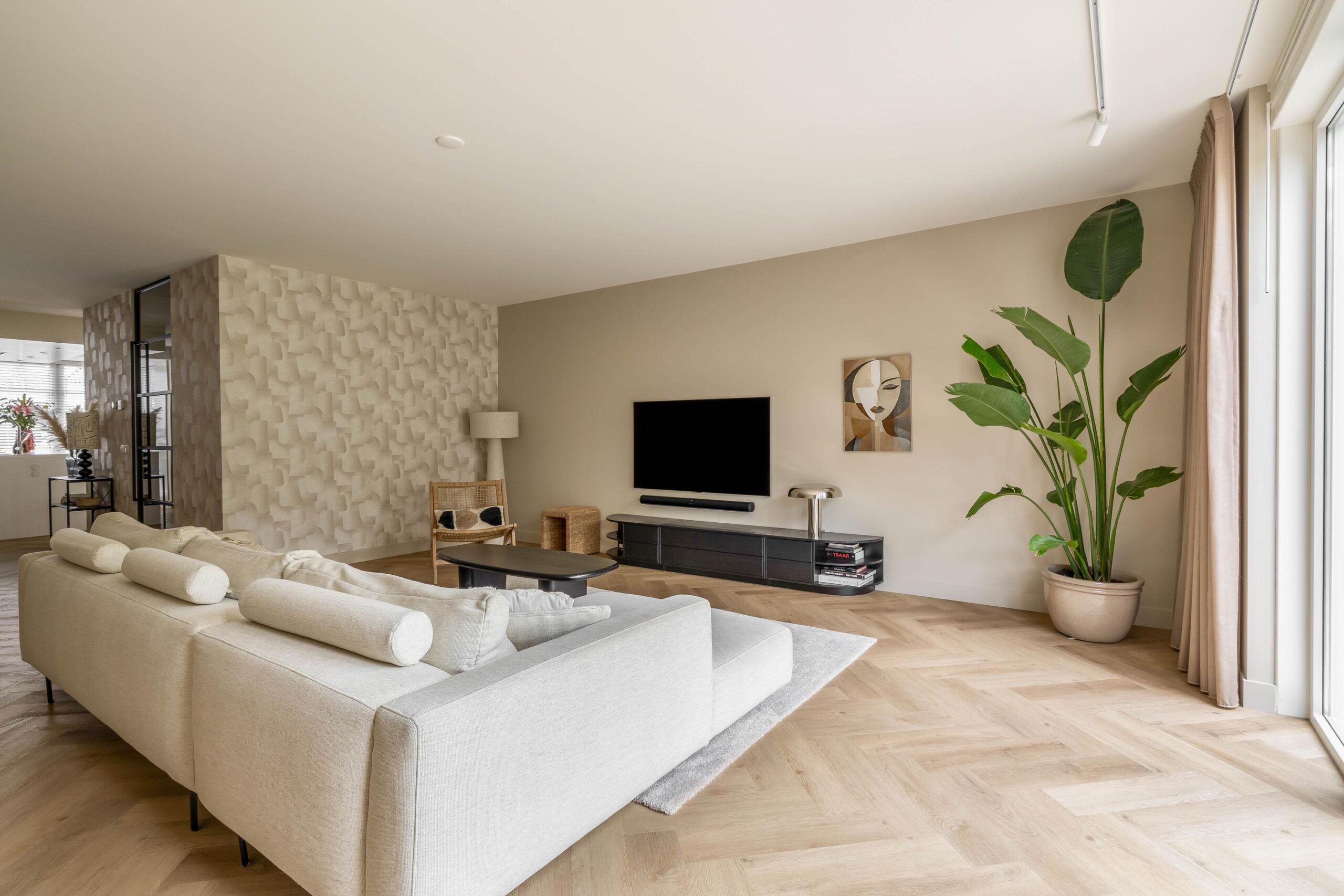 De woning is voorzien van een strakke afwerking met een PVC-visgraatvloer, gestucte wanden/plafonds en grote raampartijen die veel daglicht binnen halen. Comfortabel is de vloerverwarming op de begane grond en in de badkamer. Het stuc-/schilderwerk van de plafonds en de vloeren zijn overal sinds 2023 vernieuwd.