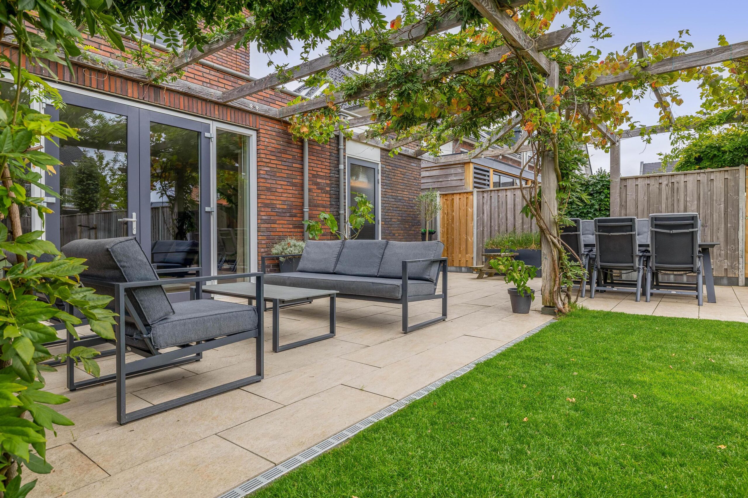 De buitenruimte is ruim opgezet en groen aangelegd. De achtertuin ligt op het zuiden en heeft een aangebouwde garage (19 m²) met elektra. De achtertuin heeft afmetingen van circa 22,00 meter x 10,00 meter en een beregeningsinstallatie. Aan parkeergelegenheid is geen gebrek. Dit kan op eigen terrein voorzien van een laadpaal of op een van de openbare parkeerplaatsen.