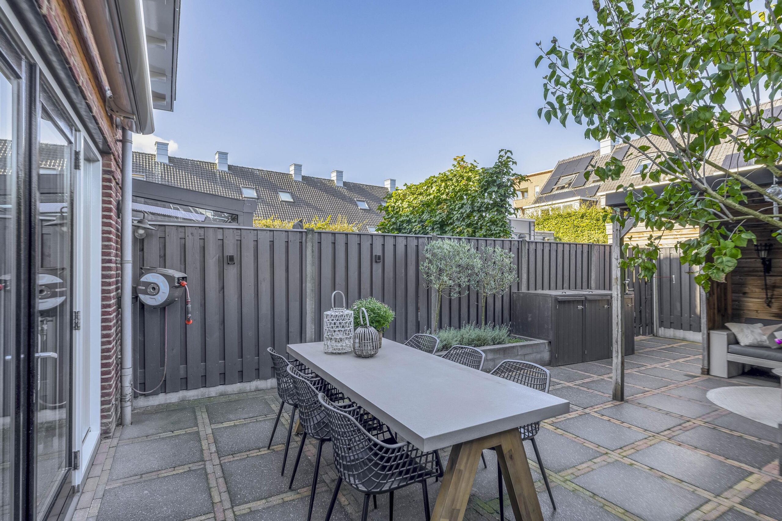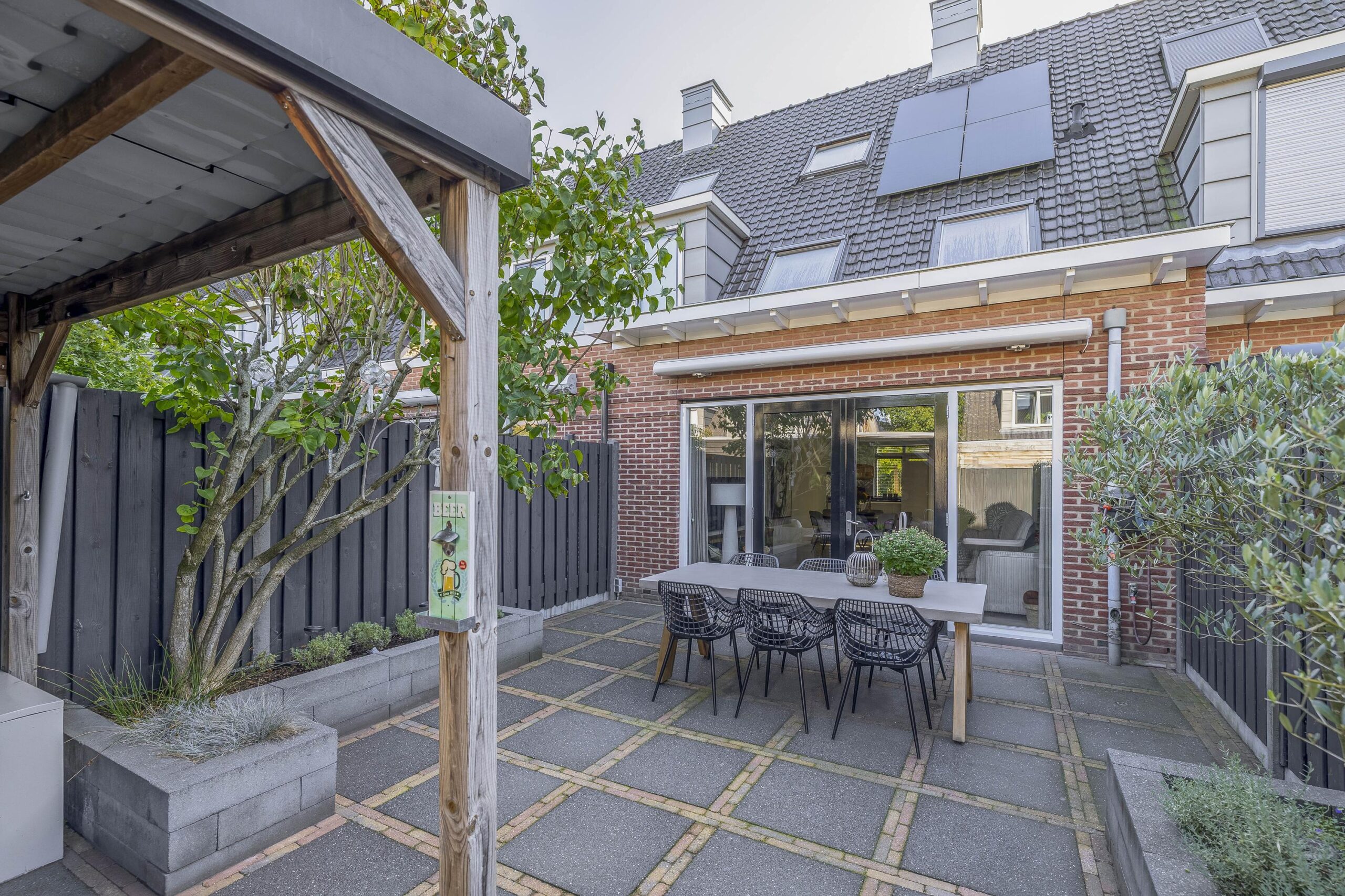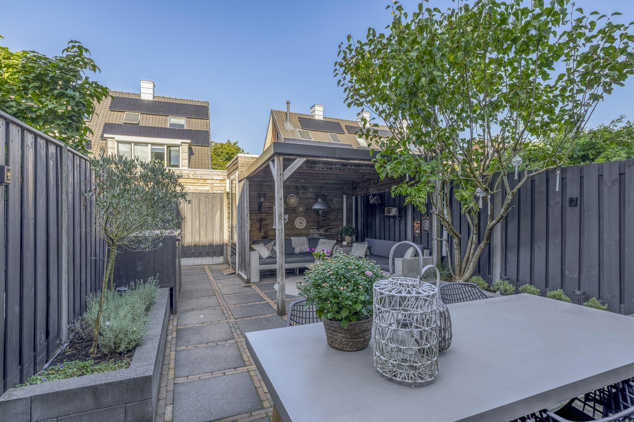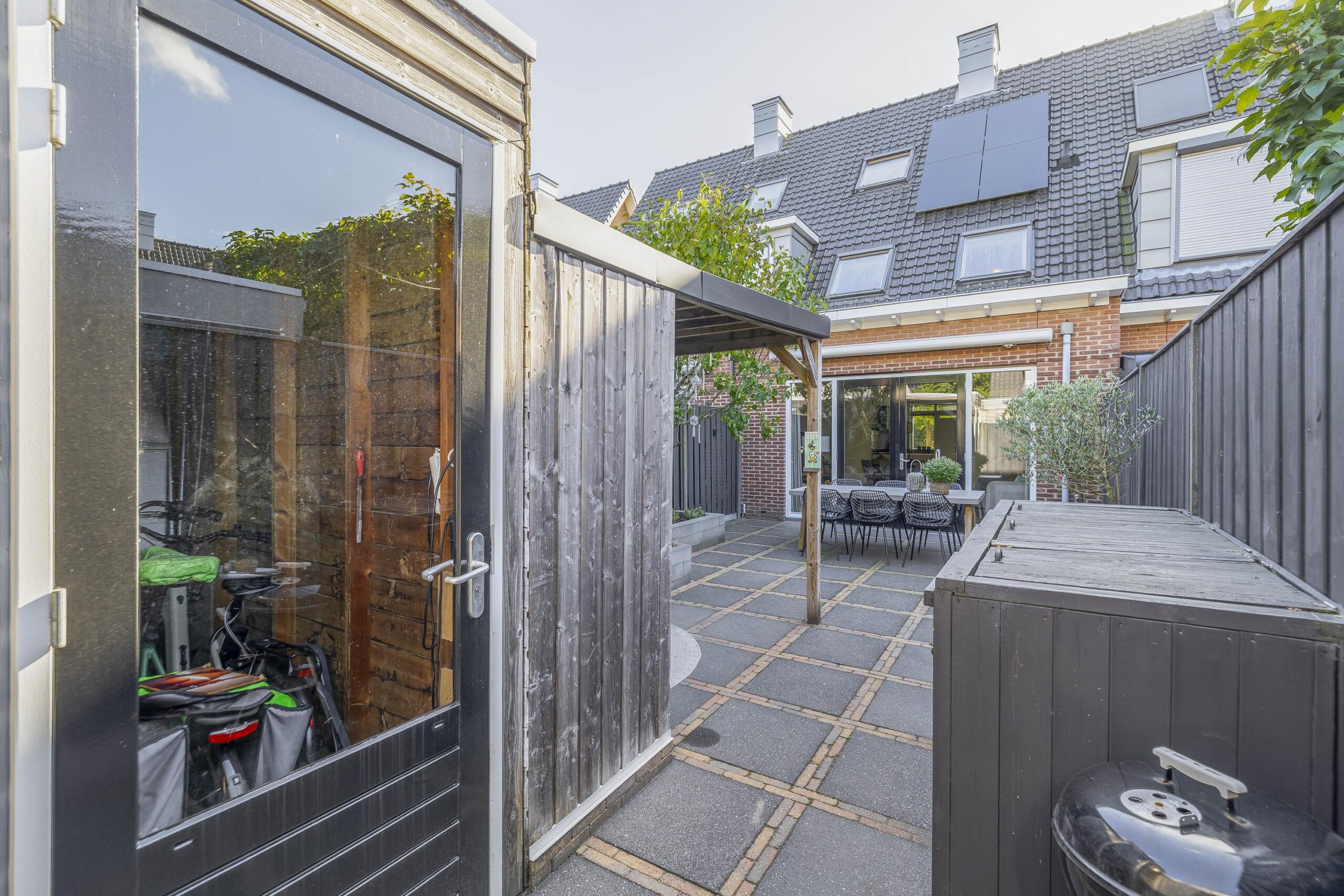 De verzorgde achtertuin ligt op het noordwesten, beschikt over prima oppervlaktes en is voorzien van een handige houten berging met elektra. Gezellig is de veranda waar heerlijke zomeravonden kunnen worden beleefd. Ook is er aan parkeergelegenheid gedacht. Dit kan aan de voorzijde van de woning in de parkeerhaven.