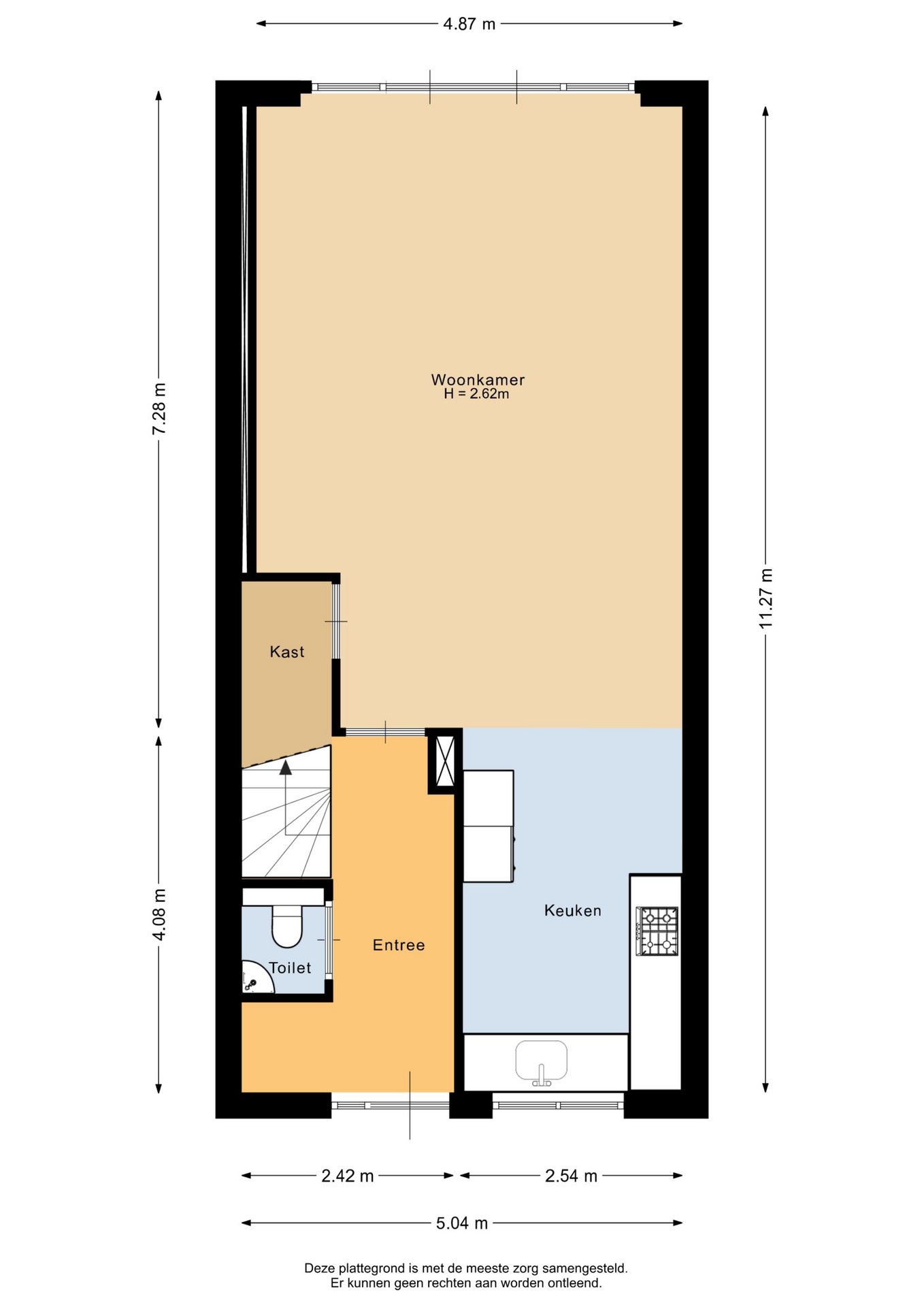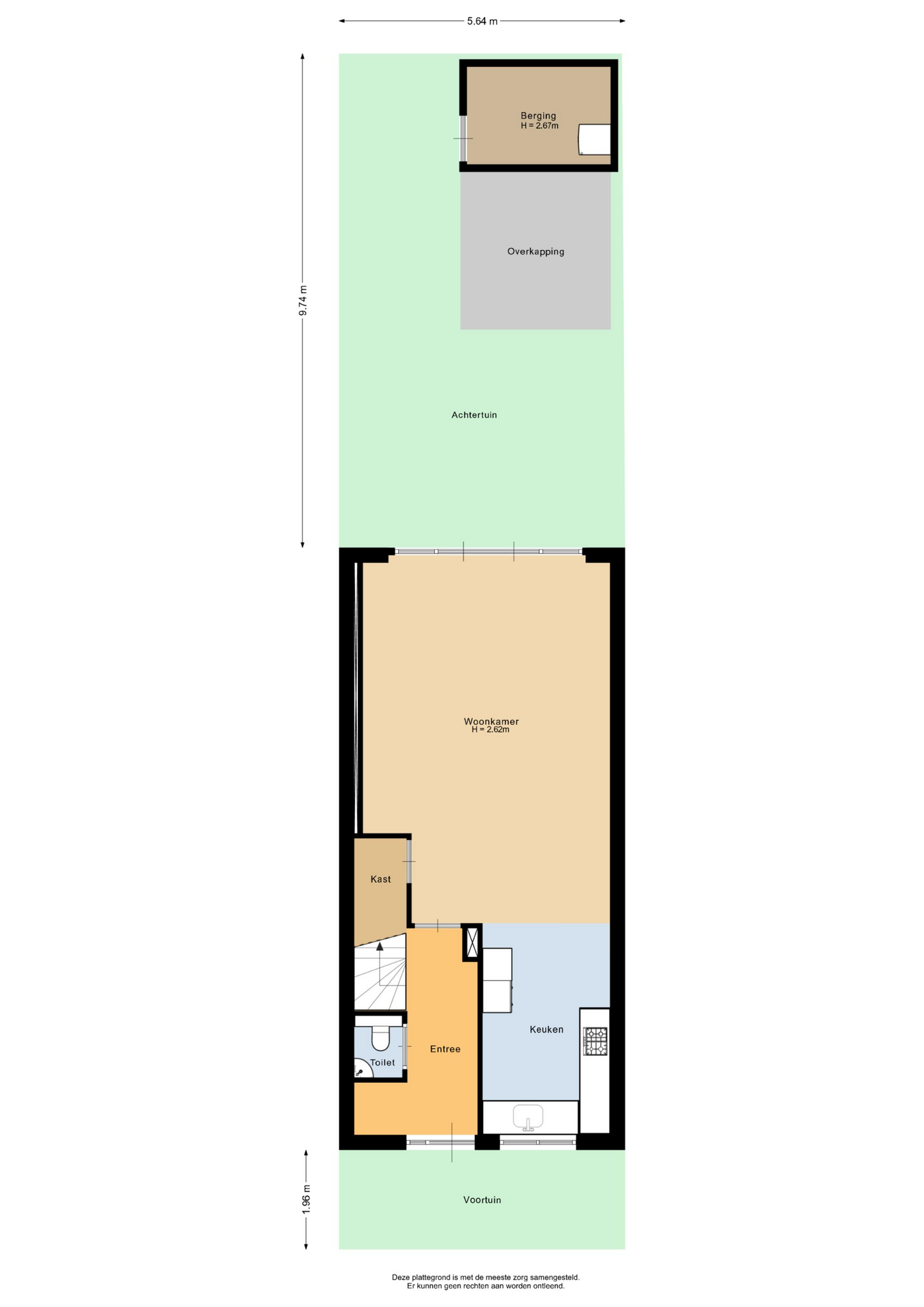 Begane grond: Entree, meterkast, toilet, open keuken, woonkamer.