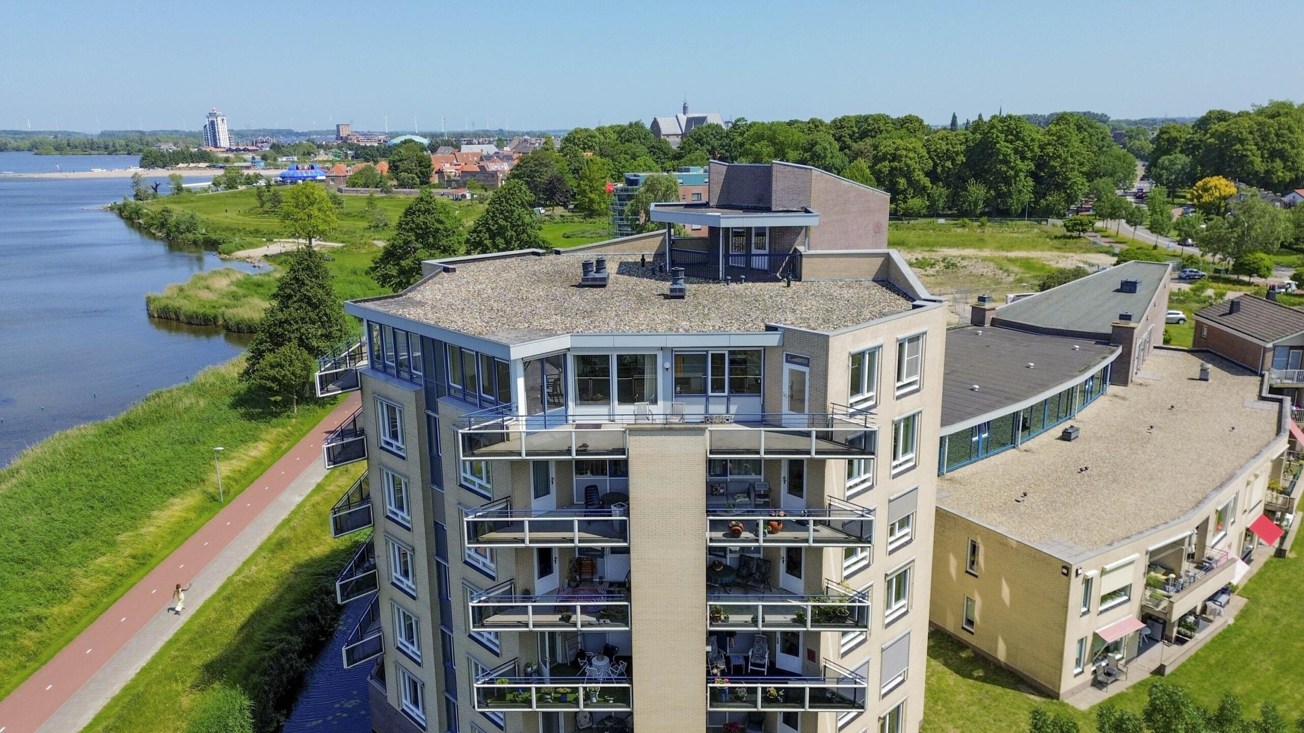 De indeling van het geheel is speels en efficiënt. Bij binnenkomst in het appartement voel je direct de ruimte. De woonkamer, halfopen keuken en eetkamer hebben samen met het balkon een panorama-uitzicht over het Wolderwijd! Vanuit hier kijk je prachtig weg! Het gehele appartement heeft een uitstekende lichtinval door de grote raampartijen en diverse ruimtes hebben toegang naar het balkon. De buitenruimte heeft een goede zonligging (zuidwesten) en een oppervlakte van 26 m². Prettig zijn de zonwering aan de buitenzijde, het elektrische zonnescherm en de horren.